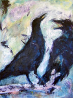 Garden Sculpture 2--sheet steel, rebar & stained glass--48" x 11"--in the collection of Hugh Lambert