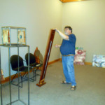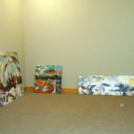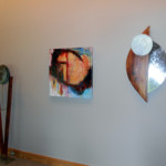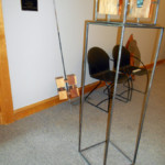 Here is the left side first look. OK. The left side is looking pretty good. Now, how to display it. I wanted it to be about five feet tall. I liked the circle in interation 4, but it needed something to increase its height. The picture below was taken in my welding yard. You can see the beginnings of the right side of the sculpture also. I didn’t like the horizontal. This is an angle test. I liked the angle. This is the next idea I explored for the dyptic. I liked it. The glass ,however, is just stacked in the cedar, not yet glued. When I tried to move it to glue it, it didn’t stay together. I had to restack and glue the glass. I don’t use a CAD program to explore sculptural design ideas. It’s too mechanical for me. It removes the natural use of my hands. The design process is trial and error. Below are the first two of the iterations on the way to my new dyptic sculpture for the RAPG grant. This is my first stacked glass piece. This is a new medium for me. Blue Ridge Glass of Waynesville, NC has been a great supporter. They have provided me with pieces of 1/4″ thick scrap glass plate. This is my second piece. I have given it to Blue Ridge Glass as a thank you for all of their help. Thank you Blue Ridge Glass Gregg’s sculpture career got a boost from the RAPG. This is a North Carolina Arts grant. His project is a diptych sculpture. Diptych means in two pieces. He’s exploring how to make two parts relate to each other, and to also stand alone. The Haywood County Arts Council coordinated with HART Theater in Waynesville to have an exhibit of art produced by local artists. Susan and I were invited to exhibit our work there for the month of October 2018. This is what we did.